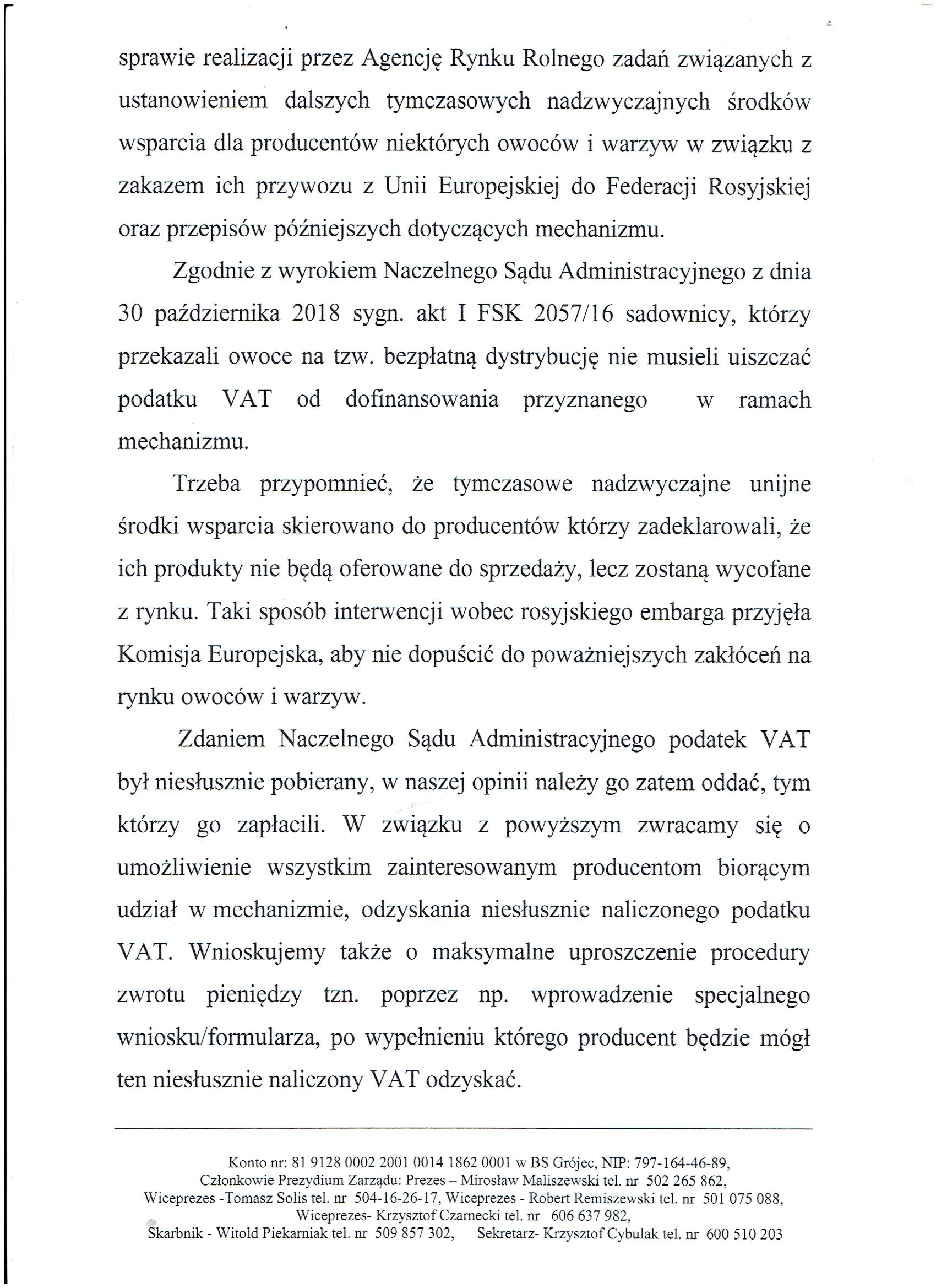 W związku z powyższym zwróciliśmy się do Ministerstwa Finansów o umożliwienie wszystkim zainteresowanym producentom biorącym udział w mechanizmie, odzyskania niesłusznie naliczonego podatku VAT. Zawnioskowaliśmy także o maksymalne uproszczenie procedury zwrotu pieniędzy tzn. poprzez np. wprowadzenie specjalnego wniosku/formularza, po wypełnieniu którego producent będzie mógł ten niesłusznie naliczony VAT odzyskać.Czekamy na odpowiedź Ministerstwa.