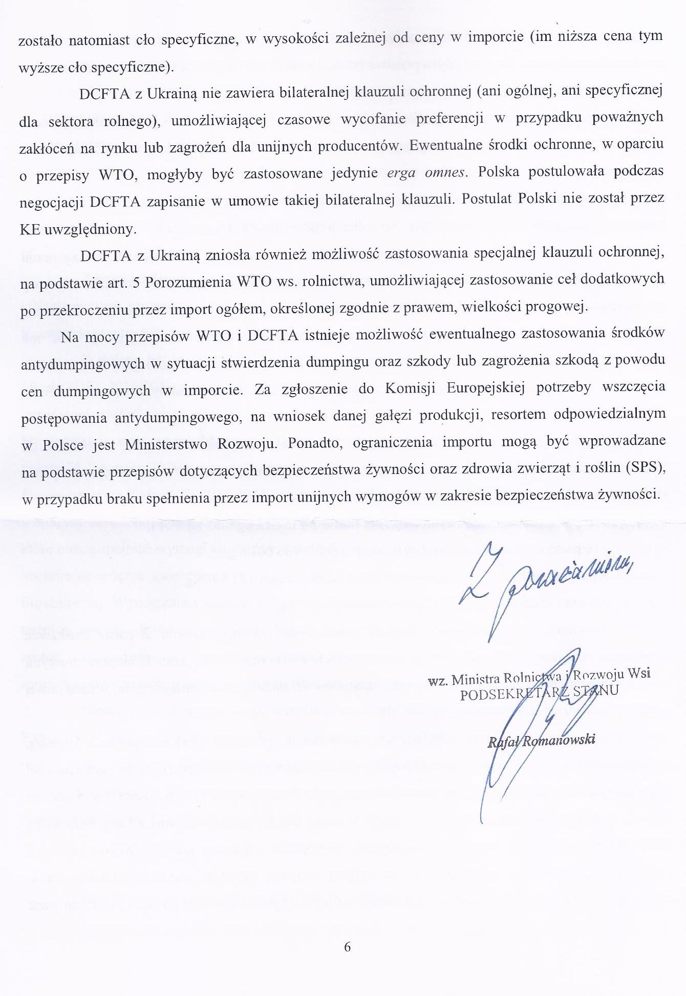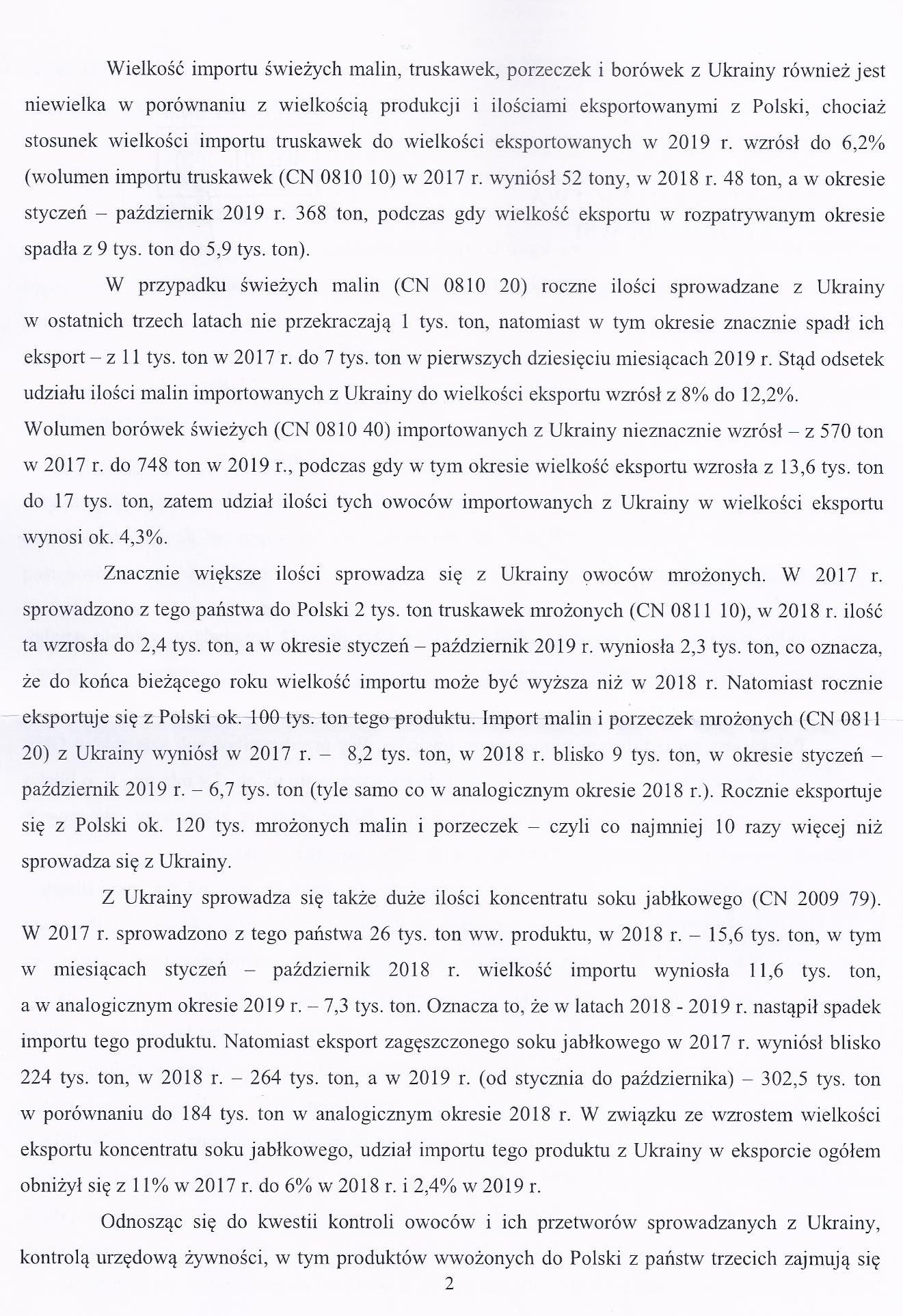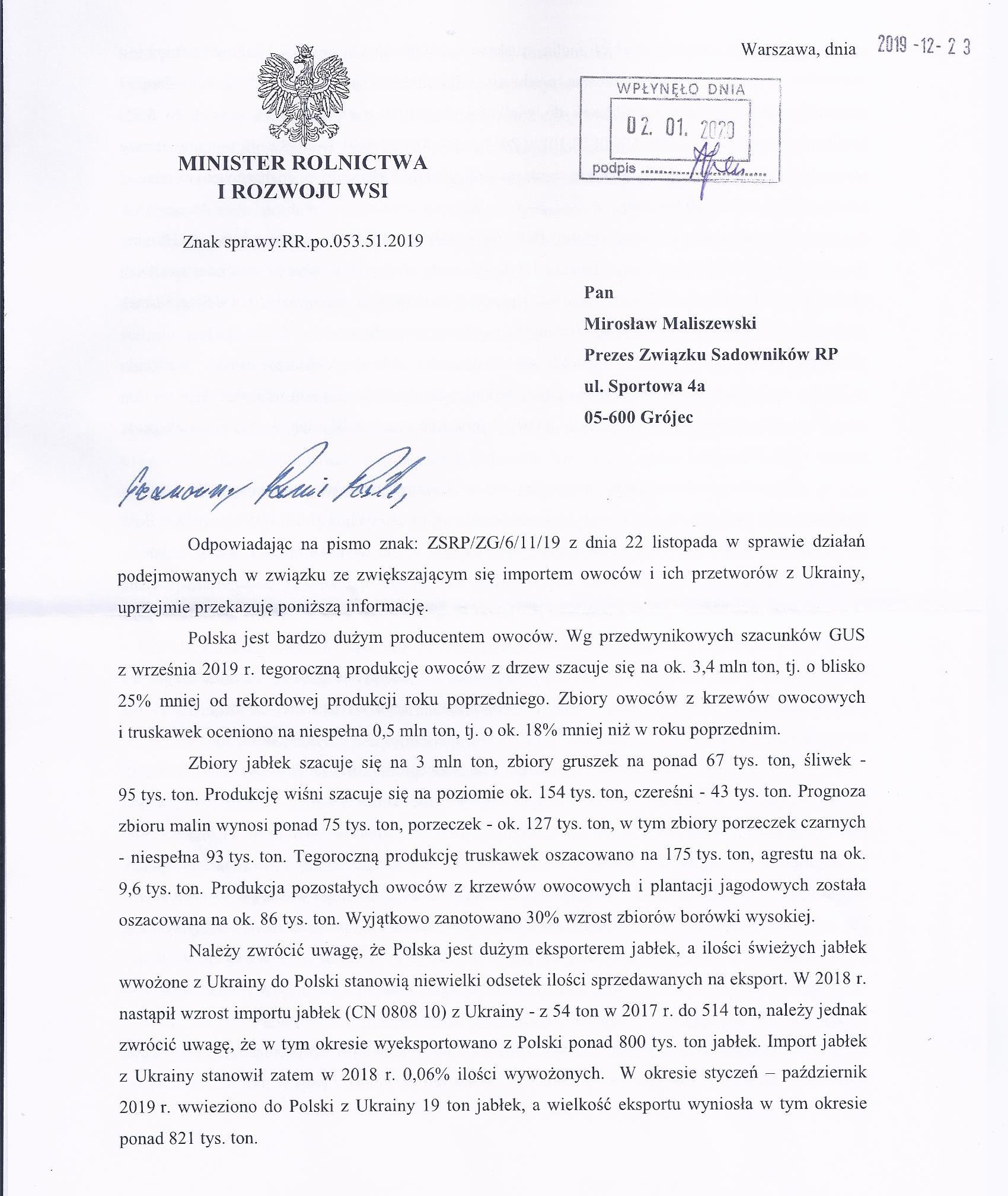 Odpowiedź Ministra Rolnictwa w sprawie importu z Ukrainy