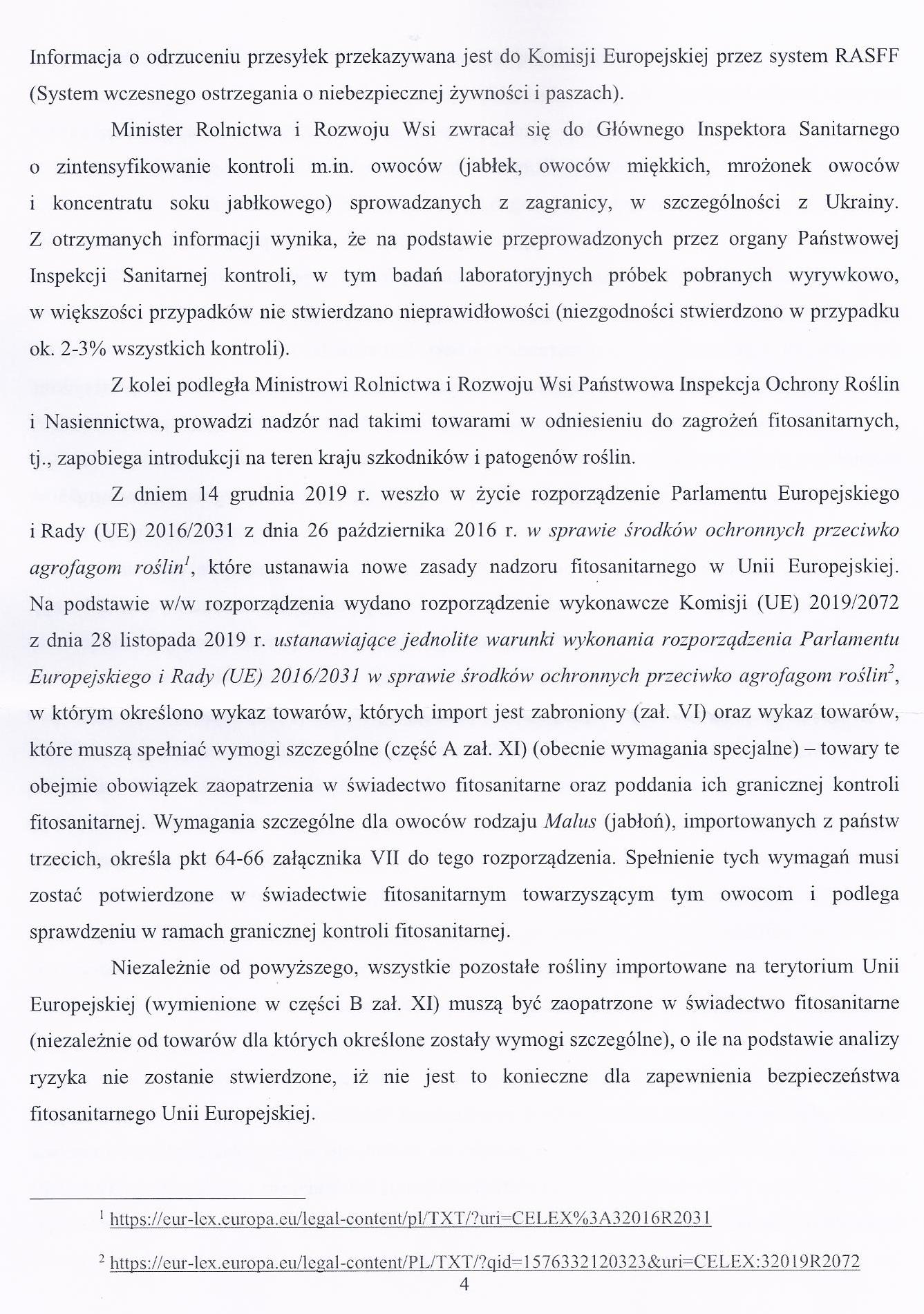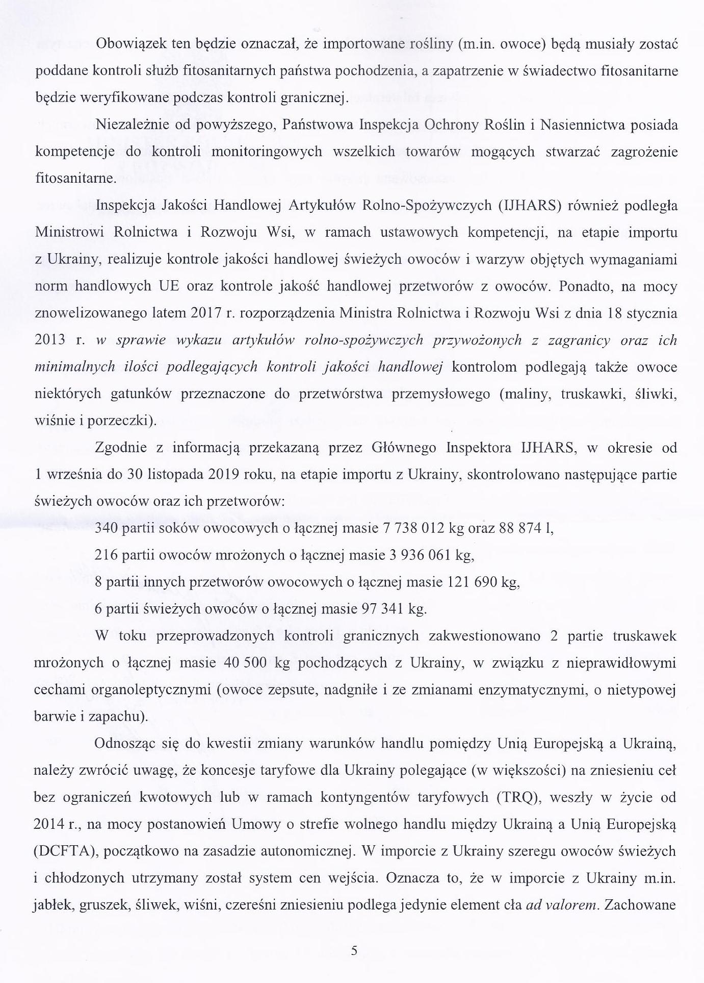 - jakie działania ma zamiar podjąć polski Rząd w związku ze zwiększającym się i niekontrowanym importem owoców i ich przetworów z Ukrainy?
