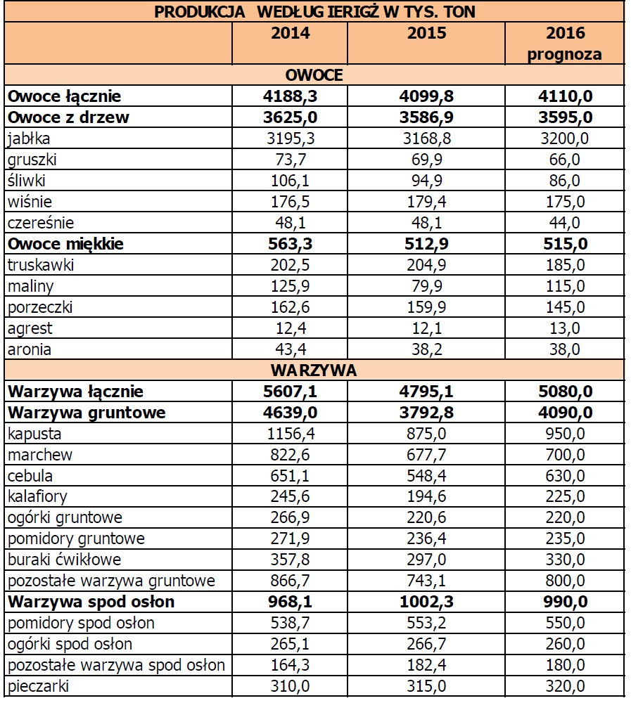 Źródło: FAMMU/FAPA na podstawie: Rynek owoców i warzyw – stan i perspektywy czerwiec 2016 r.